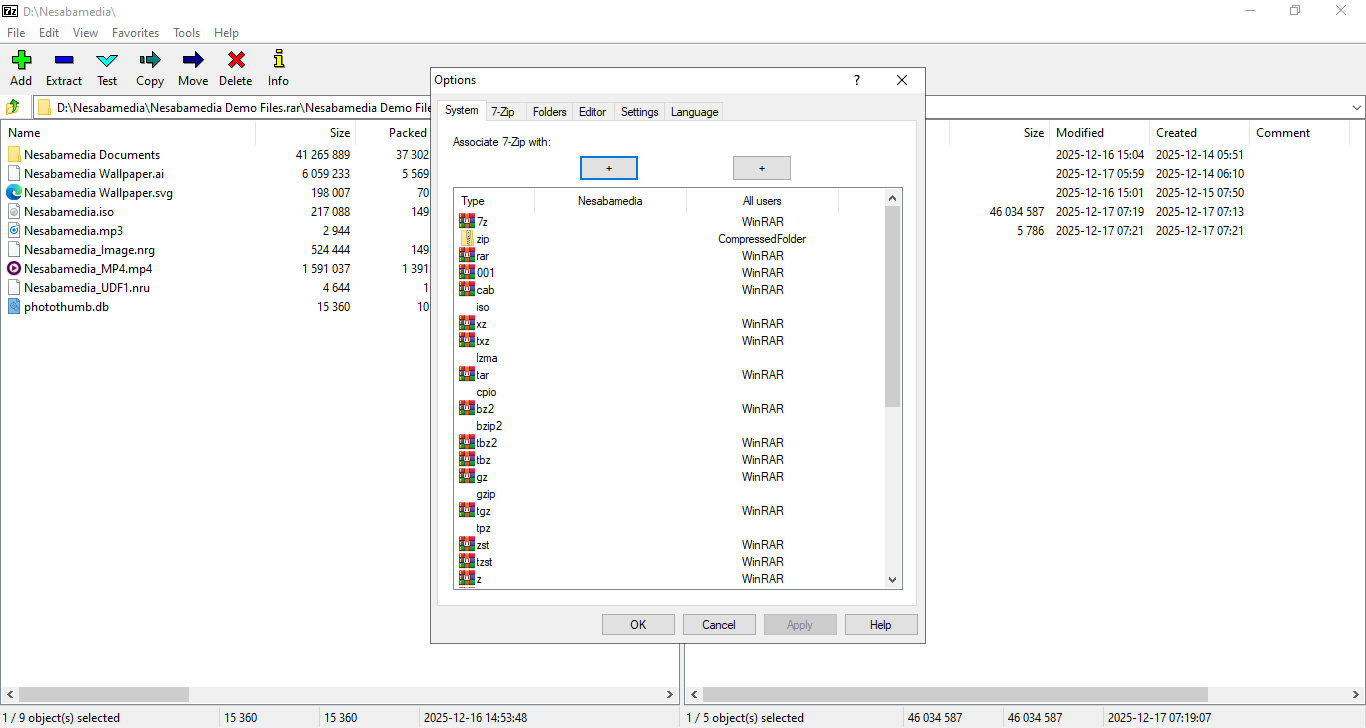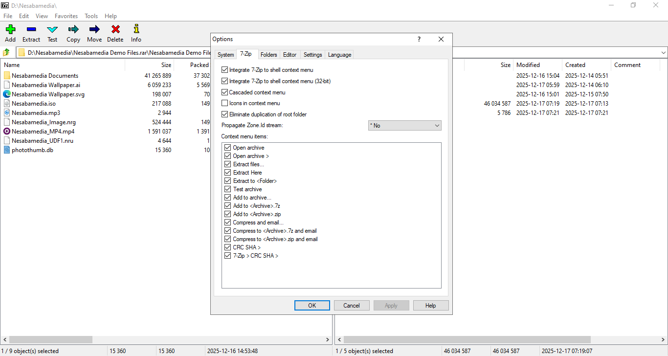 7-Zip integrates into the context menu by default, so you can compress or extract files without having to launch the main interface every single time you’re going to do it. Some commands, such as ‘compress and email’, always bring up a dialog box.