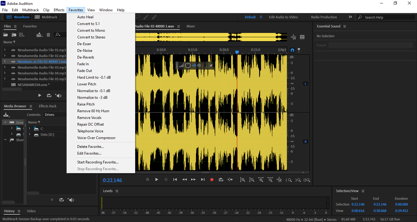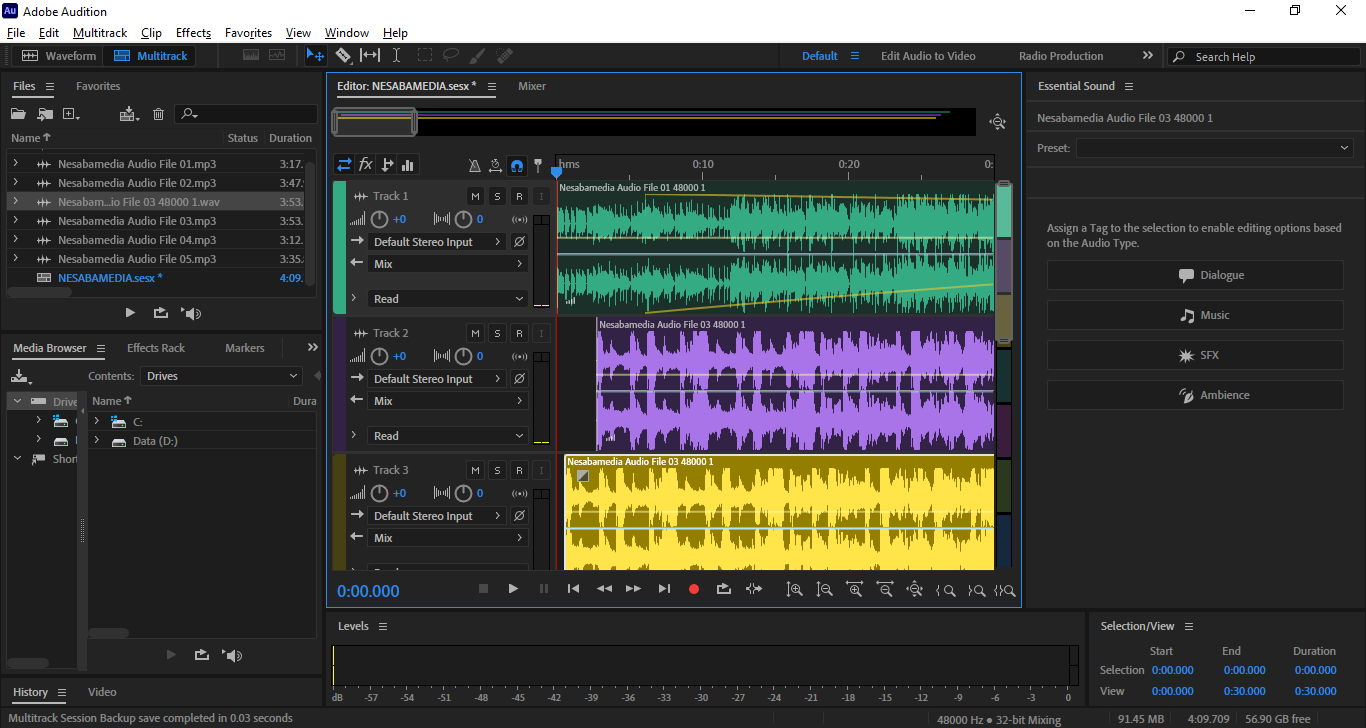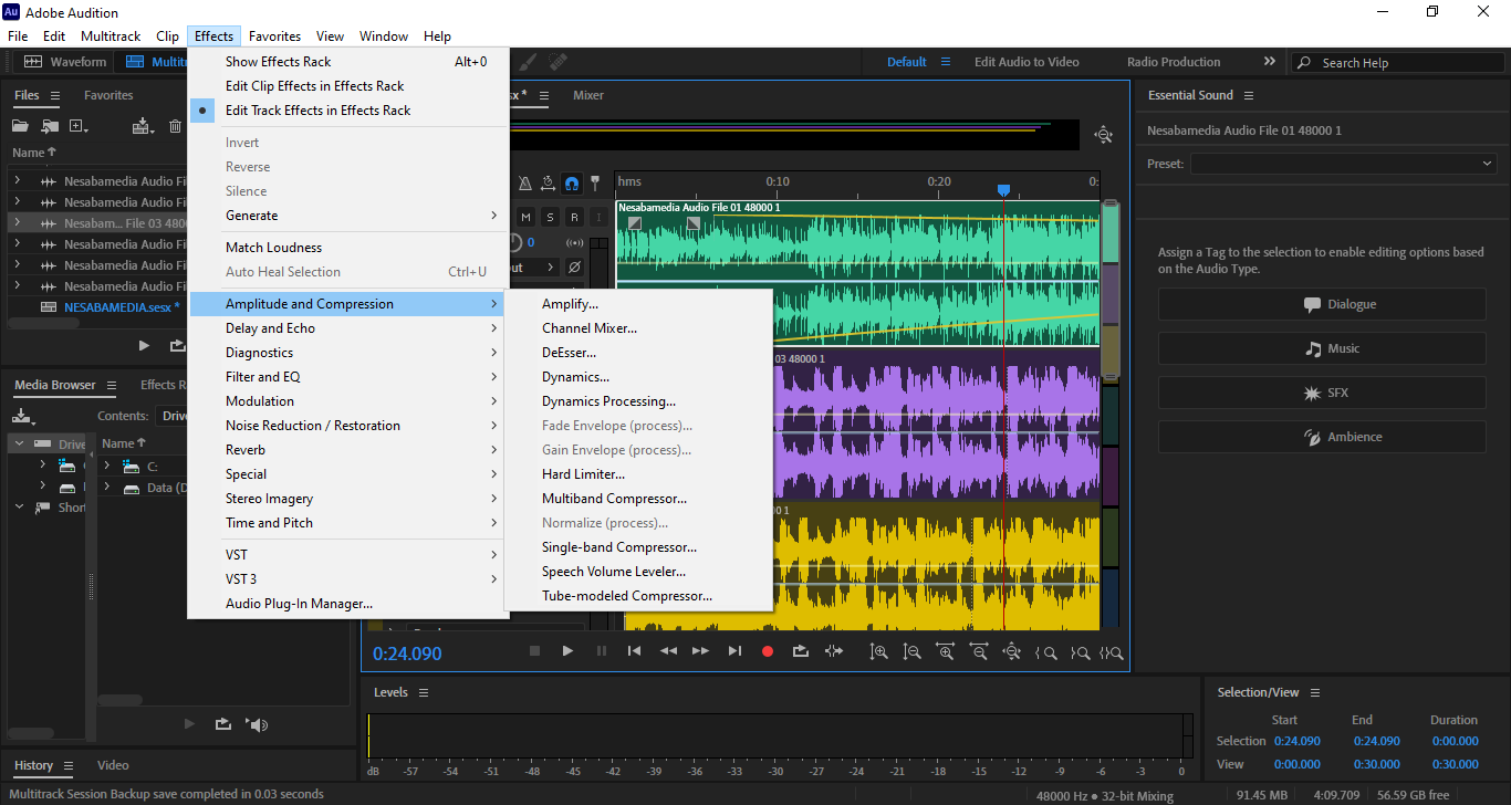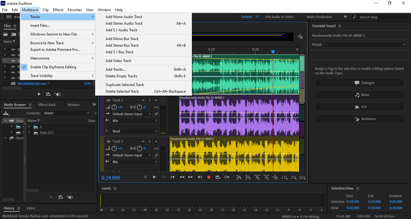 In addition to Multitrack Editor, there is also what is called as Essential Sound. It is a panel which contains tons of options to edit and improve your audio files. When you use this panel, there is no need to worry about the original files since the edits are non-destructive. It means the quality of your original files stay untouched no matter how many times you edit the audio files.