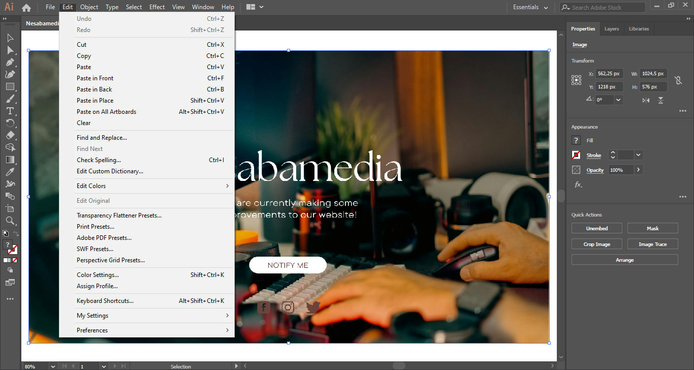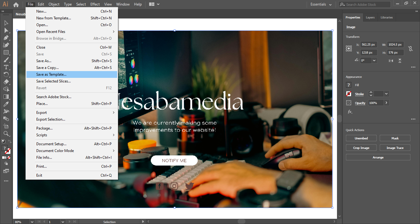 When the client asks for a quick preview of your design, you can turn on the Presentation Mode, and Illustrator will turn every artboard into a slide. Everything else that isn’t a part of the design like the menu and guides are hidden to remove distractions. This quick switch is a time saver too.