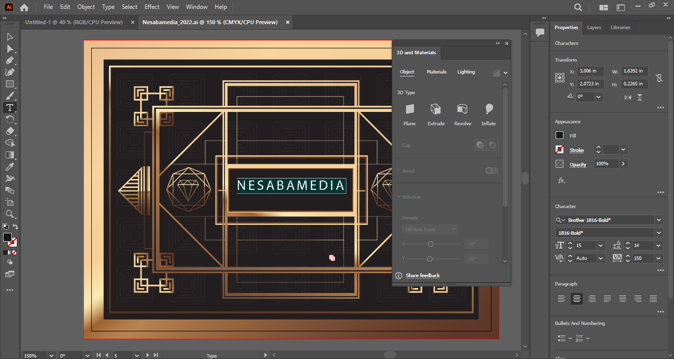 Some features are new, some others are tweaked to improve its capability or usability, and there are also several existing features that have been made easier to reach when you need to use them like Rotate, Inflate, Extrude, and Revolve, which have been grouped into a unified 3D and Materials panel along with pre-made, physically-based 3D textures known as Adobe Substance Materials.