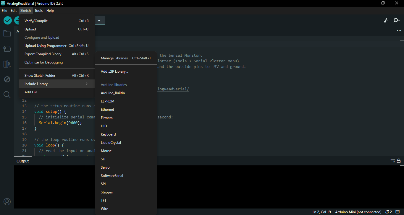 In addition to the text editor, Arduino IDE’s graphical interface includes a message area, a row of menus, and a toolbar with a number of buttons. The overall design of its graphical interface is pretty neat without any useless element.