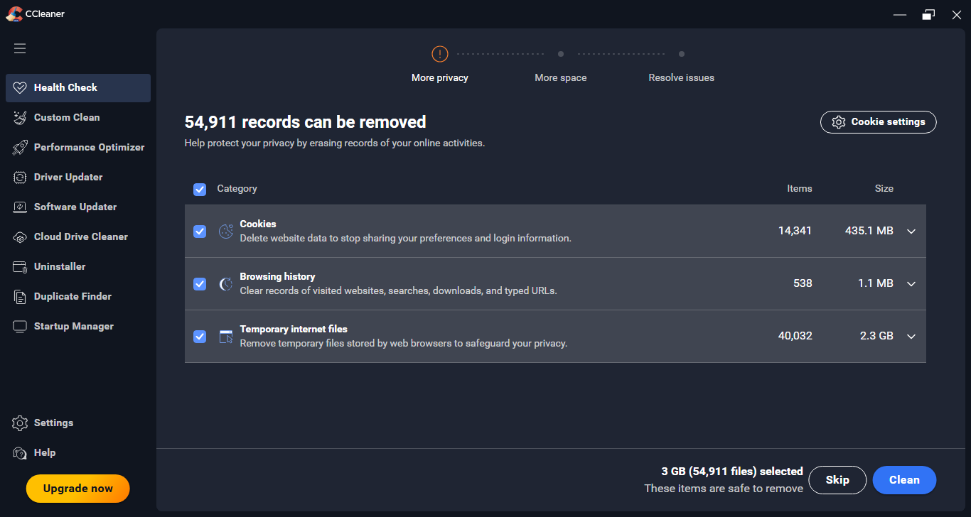 The first thing you should do before installing CCleaner is to disconnect your PC from the internet to prevent it from establishing a connection, and when you run it you should immediately head over to the Privacy section to disable the data collection options which are enabled by default.