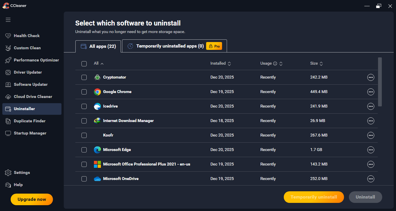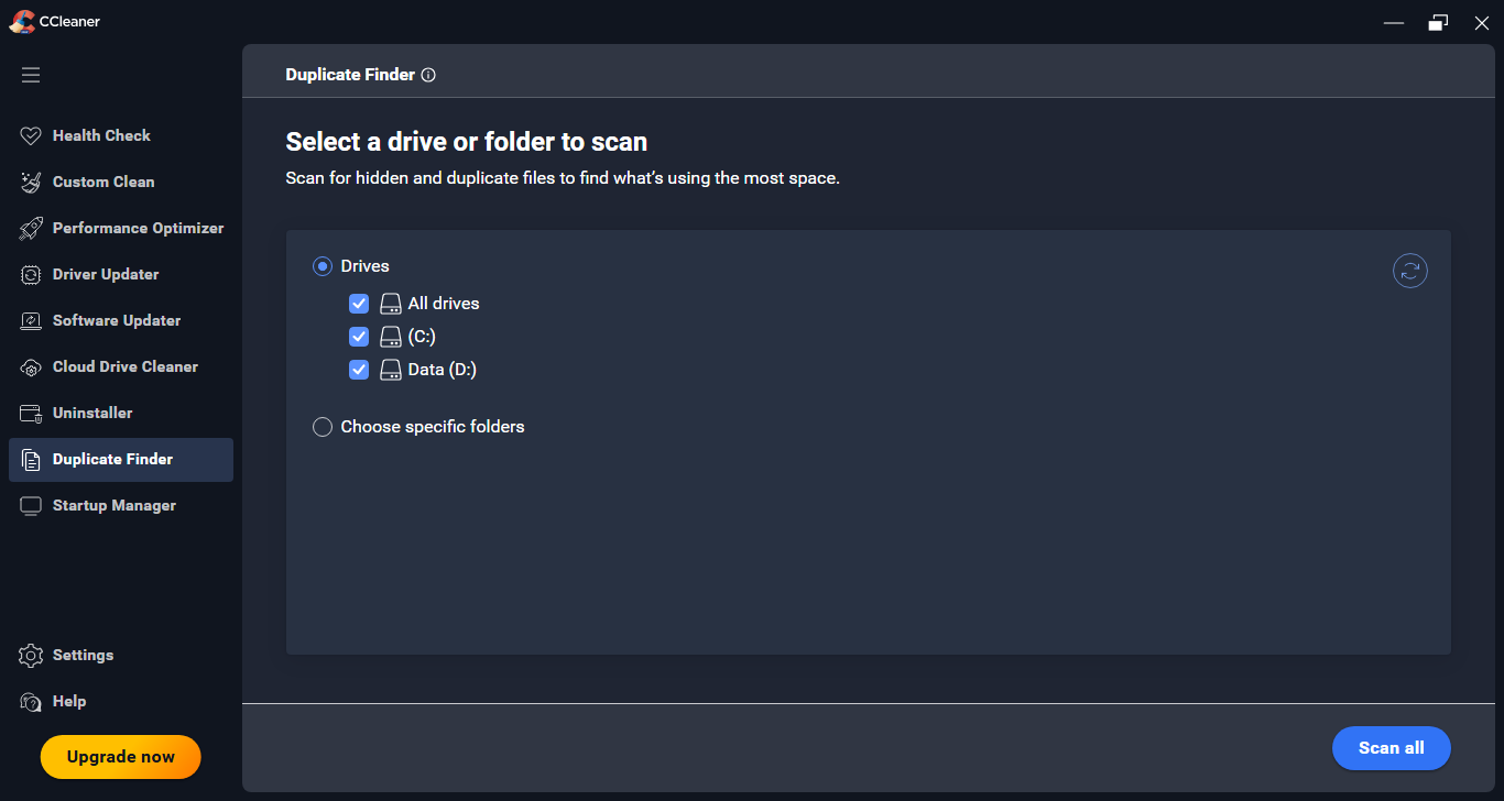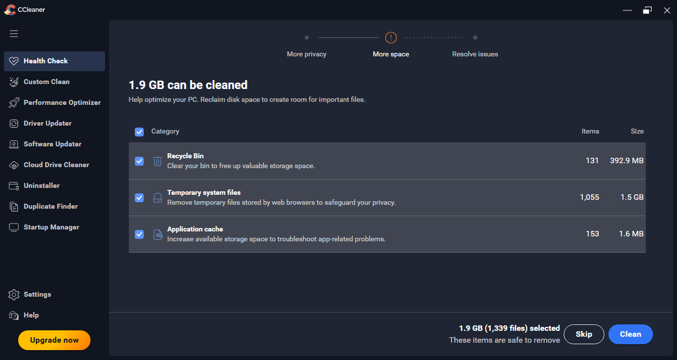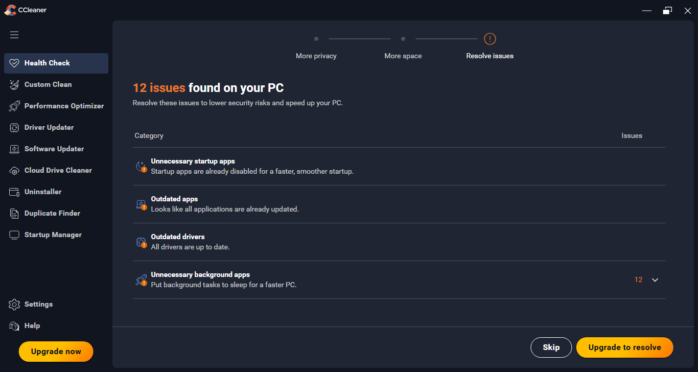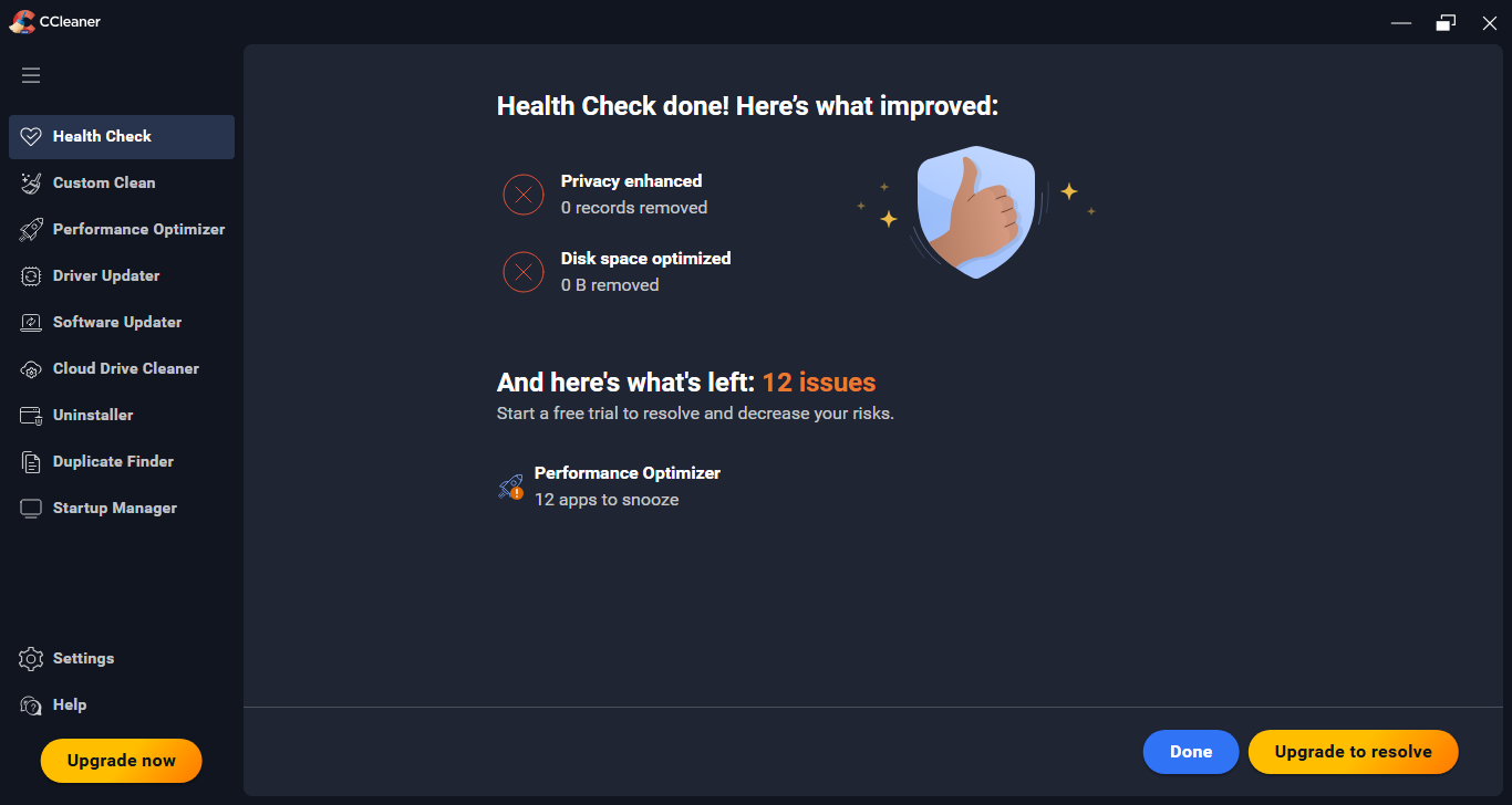 Before you launch CCleaner, keep in mind that it can run without administrator account, but some functions won’t be available, like Driver Updater and Performance Optimizer.