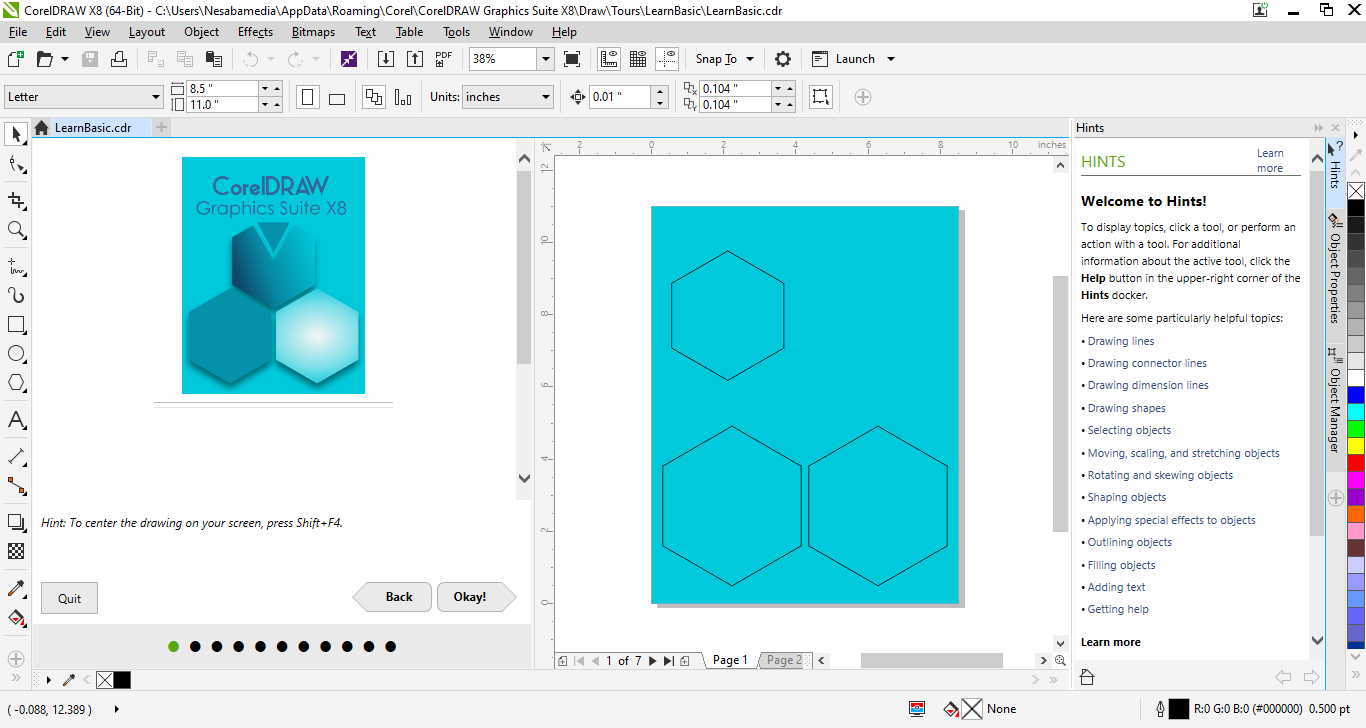 Among its features, Hints docker is designed to help new users in the learning process. In addition to providing context sensitive information, it also lets user to quickly access additional resources to learn more about the existing features.