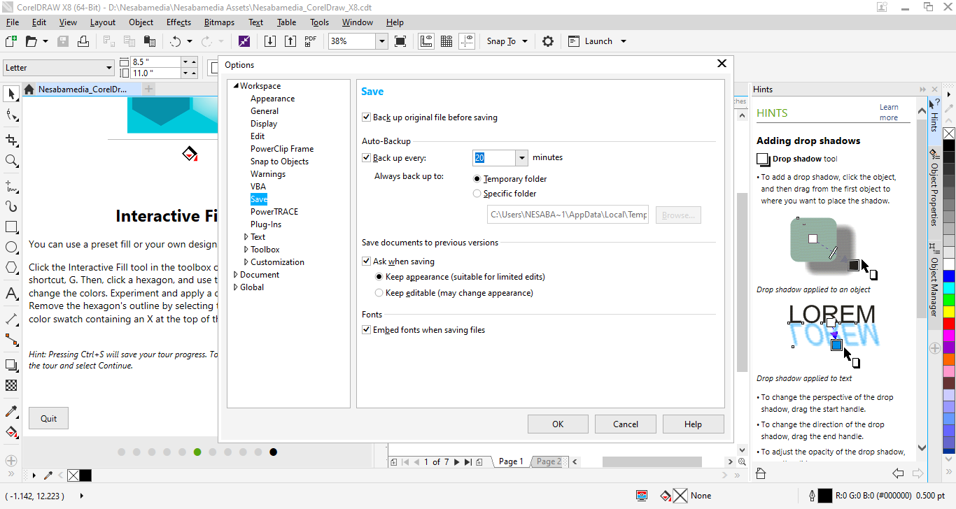 Earlier version have customizable user interfaces, but not as customizable as CorelDraw X8’s interface. The redesigned icons can scale up to 250% which makes the UI items displayed in larger size on the screen, the background can be darken or lighten, the desktop color can be adjusted to suit the documents for lower contrast, and so on.