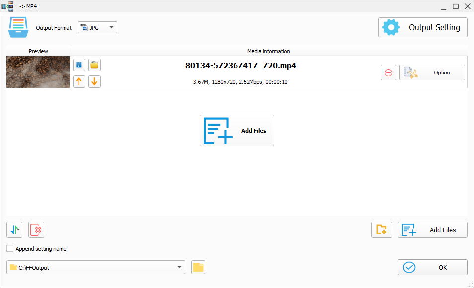 To convert a file, pick a format at the left side of the interface. For example, if you want to convert a video to MP4, click the MP4 button. Another window will appear where you can click the output setting button to make some necessary adjustments to the conversion parameters.