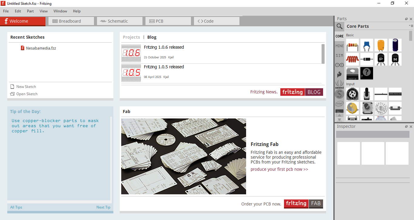 The tab is similar to that backstage view of Microsoft Office. It’s where you can find all your recent sketches, read the tip of the day, receive the latest news from the developer, and order your PCB. If you don’t find the tab useful enough to keep, you can hide it to streamline the interface more.