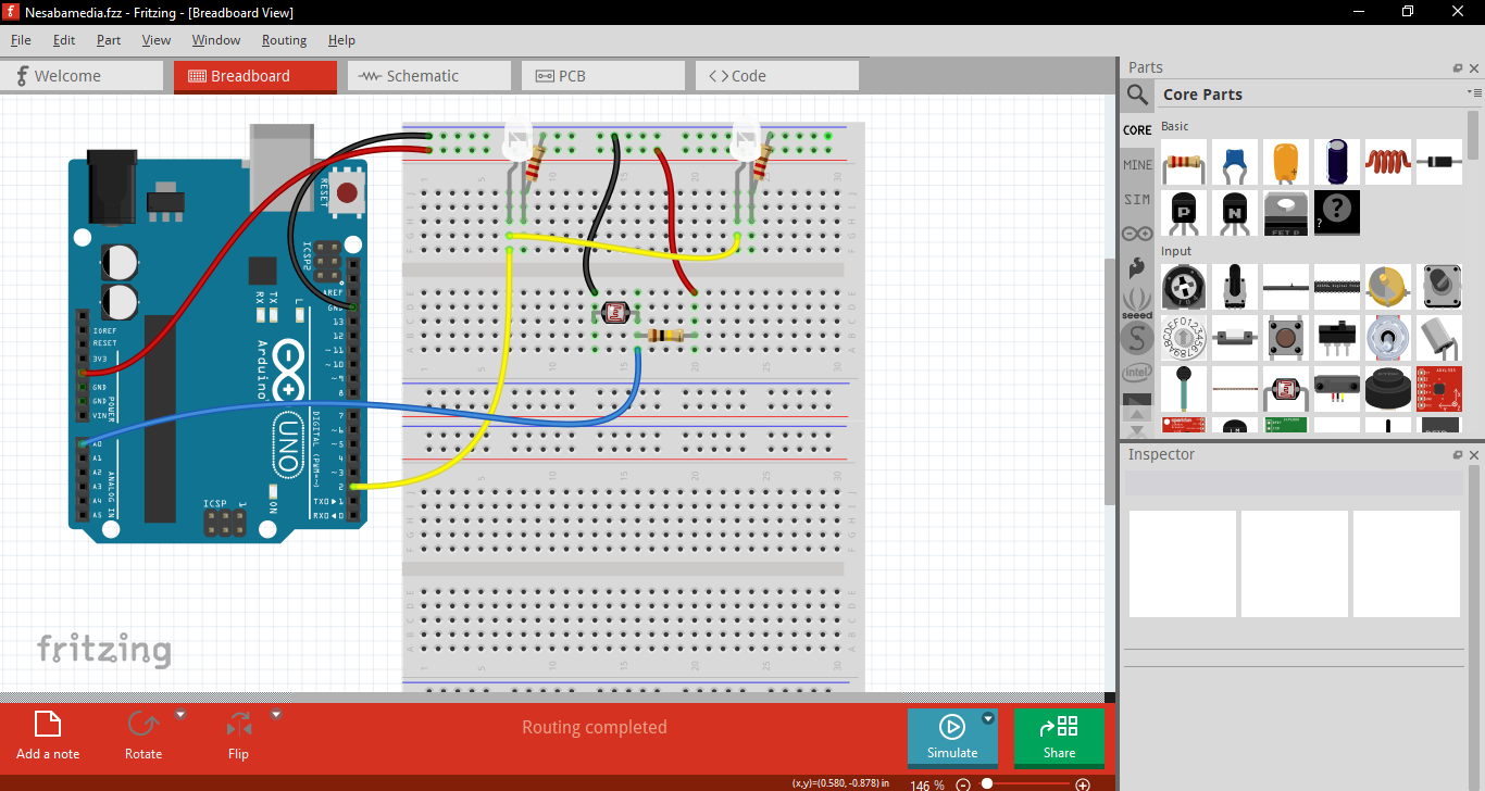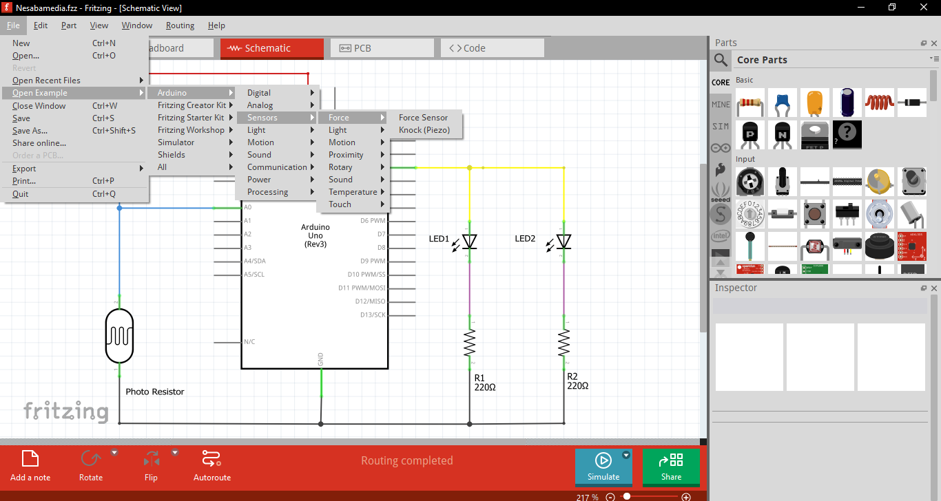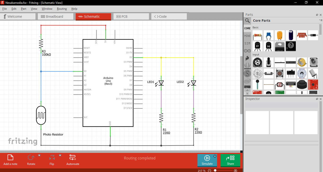 Distributed under an open source license, Fritzing is a design software for electronics circuits. You can think of it as a digital workspace where you can build circuits virtually on a breadboard like you would in real life, then assemble that same circuit using actual components.