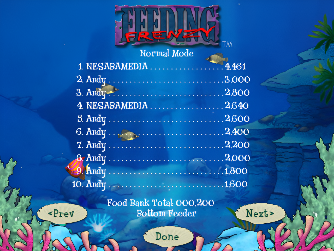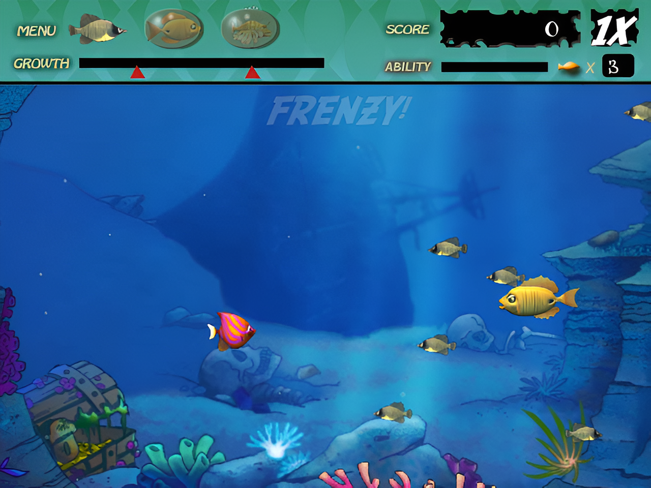 Two modes are available in Feeding Frenzy: Normal and Time Attack. Both are not that different but the latter is more difficult to play because you have to complete missions in a limited amount of time. In other words, it is a time based mode.