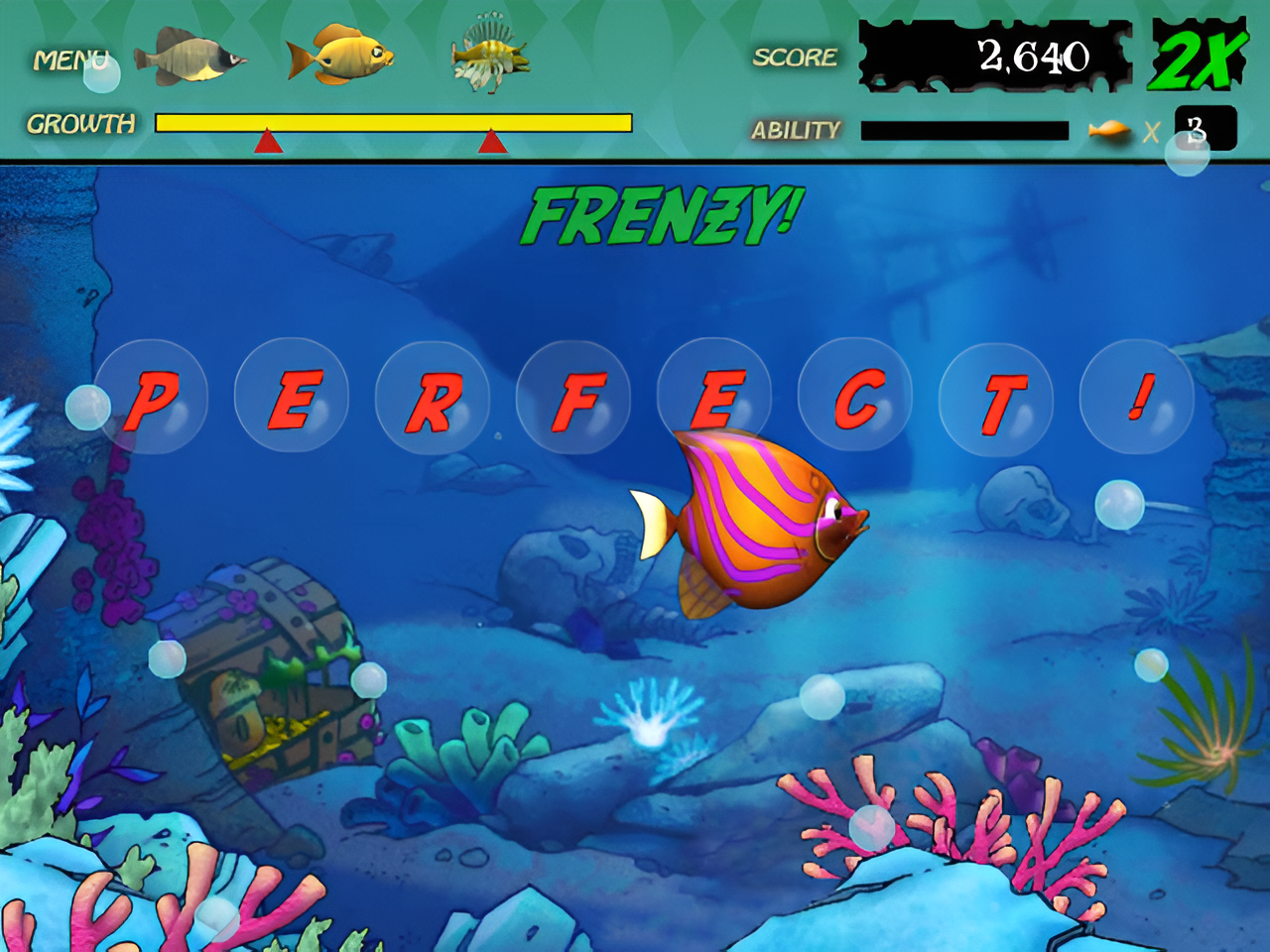 As you progress through the game, the fish gets bigger. And when it does, you will find there are more fishes to eat, and the sound of gobbling gets louder.