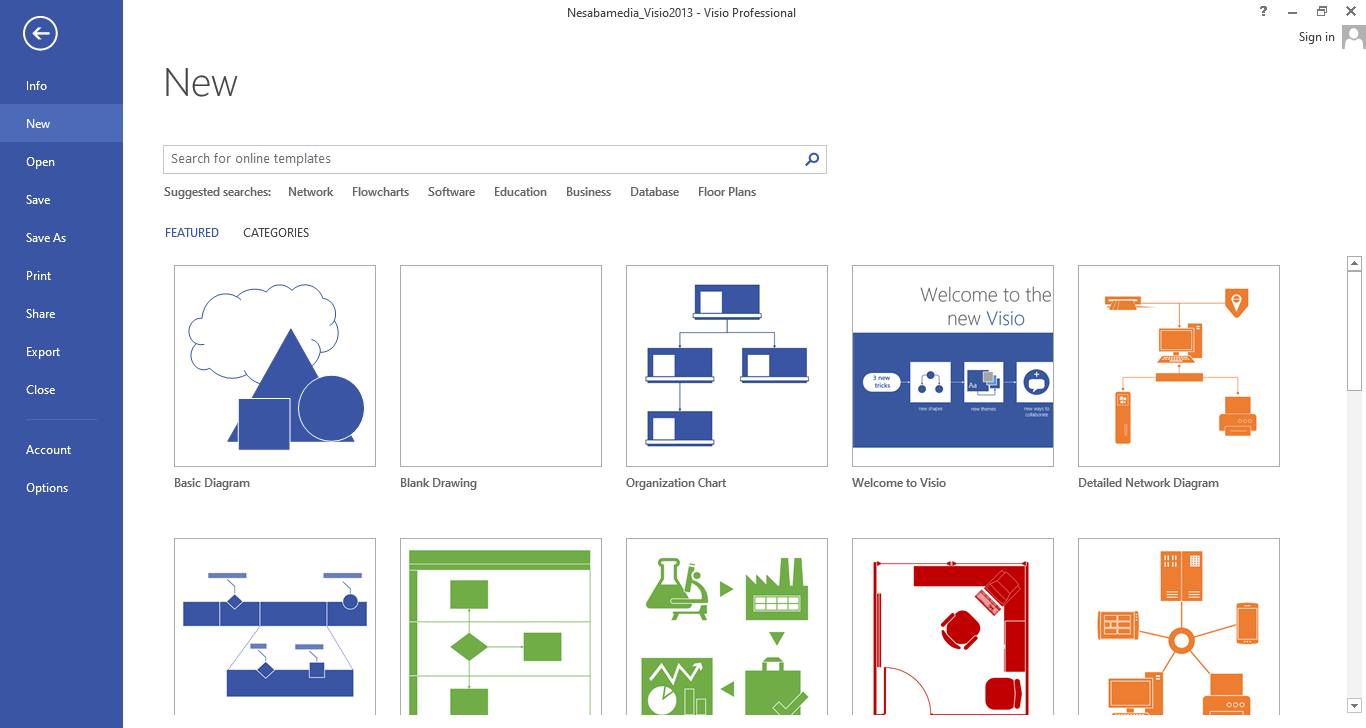 While shapes and themes make your drawing looks beautiful and meaningful, templates are useful for your starting point. Instead of drawing a diagram from scratch for every project, you can use the templates. There are many kinds of templates so you’re likely to find one that suits your need.