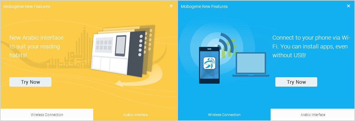 Some initial steps might be required for Mobogenie to recognize your device. For example, if you choose USB connection, Mobogenie requires you to enable USB debugging. If you choose wireless connection, it requires you to download and install Mobogenie Helper either by scanning the provided QR code or visiting the shortened URL on your Android device.