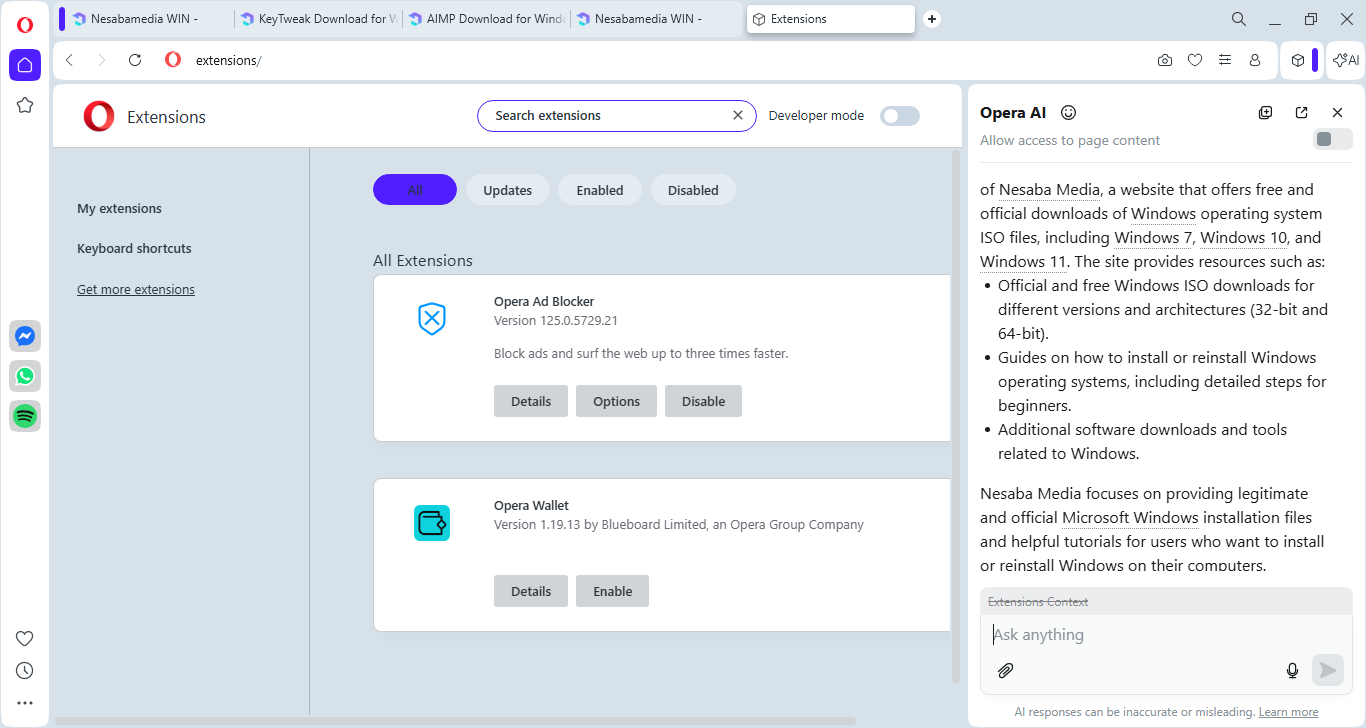 Also, since workspaces are placed in the sidebar, the tab bar is less cluttered, unlike Google Chrome where groups are always visible in the tab bar even when they are collapsed. You can click the link below to download Opera Browser for Windows: