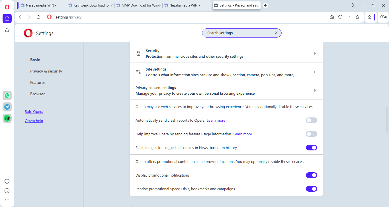 Keep in mind that you should always pay attention to details when installing a software. In the case of Opera Browser, it collects your data unless you disable the options during the installation. The options to receive promotional content are also enabled by default which you can disable by heading over to the browser’s Settings and open the Privacy & Security section.