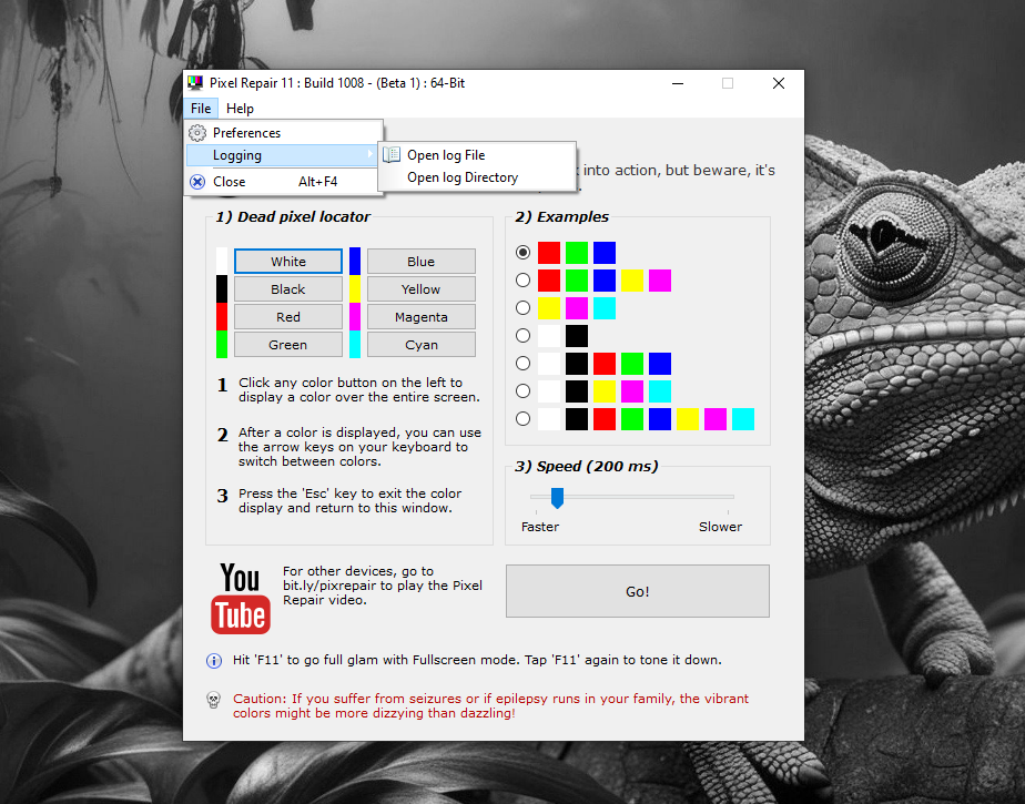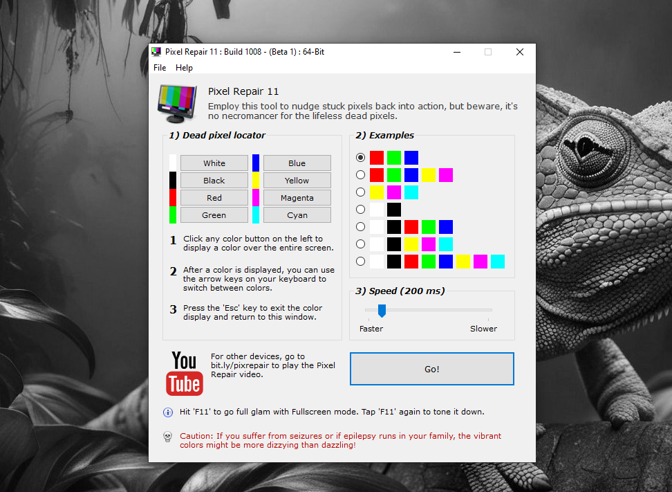 If you do find a stuck pixel, press the Esc button on your keyboard to get the screen back to normal, and return to the main window. After that, click the Go button in Pixel Repair.
