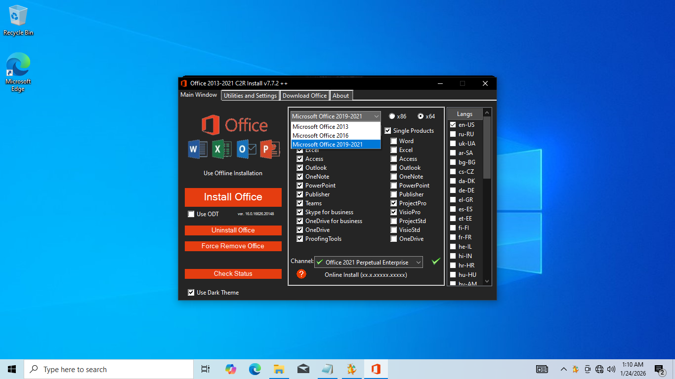 It doesn’t take long to activate any of the supported Microsoft products, but because sometimes things don’t always go according to plan, Ratiborus KMS Tools also provides some extra tools to help you out. One of them is an uninstaller dedicated for Microsoft Office, which allows you to remove it completely so that you can install a newer or an older version.