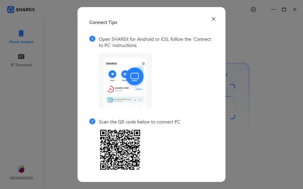 SHAREit creates a hotspot on your computer when it is running so that the other devices can find and connect to it automatically. Alternatively, it supplies a QR code which other devices can scan to make the connection.