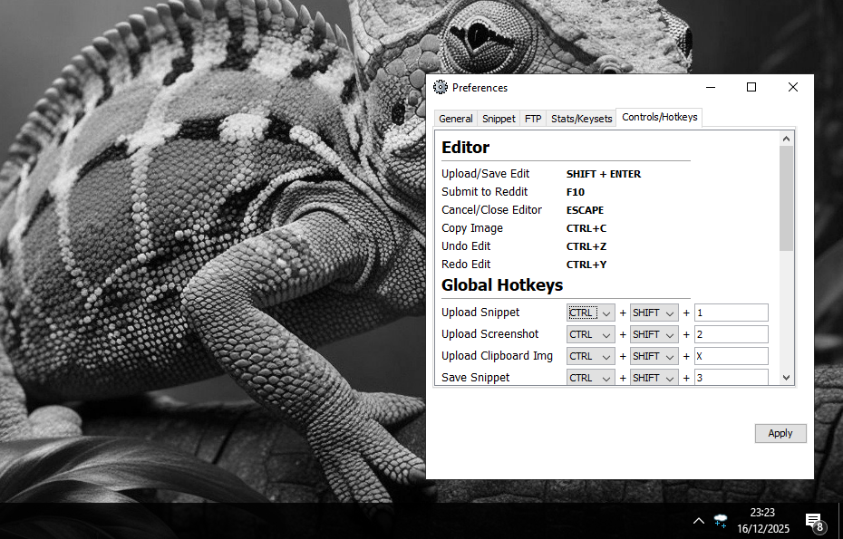 There is a fairly long list of hotkeys in Snipping Tool++. They are grouped in three categories. The global hotkeys alone consists of nine hotkeys. Note that only these global hotkeys are customizable.
