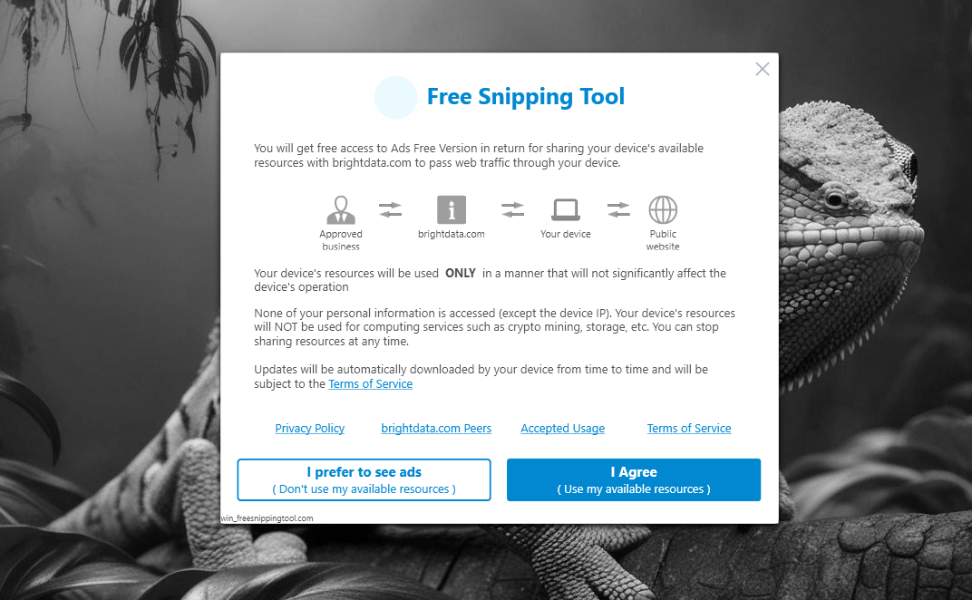 If you take a look at it, Snipping Tool looks good, but it is actually full of annoyances. The reason is because it will keep bombarding you with upgrade notifications. And if you don’t want to see the ads that keep popping up from time to time, you have to allow BrightData to use your computer resources to download the so-called public data from the internet.