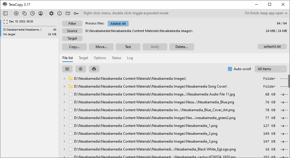 When a file is being copied, Teracopy shows the transfer speed and progress. It keeps a log that records when the task is created, when the transfer is started and completed, and the source and destination of the file.