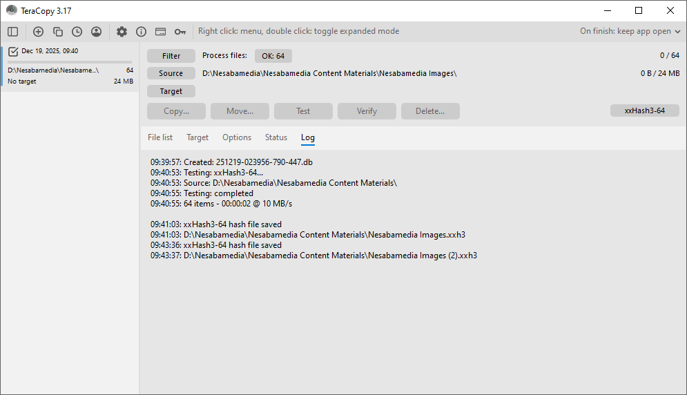 Teracopy is not only useful to transfer files. It can also be used to compare two folders for the purpose of verifying file integrity. This method, if applicable, is more efficient than checking files one by one. You can click the link below to download Teracopy for Windows: