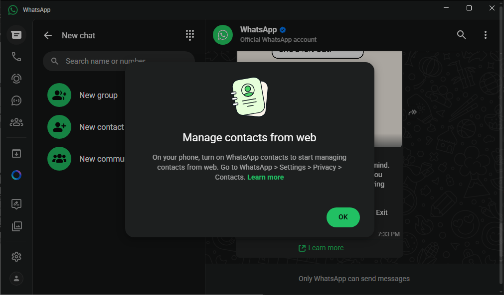 WhatsApp Desktop’s theme can be set up to Light, Dark, or follow your Windows theme. This feature might look trivial, but not every chatting app gives you this freedom to choose between staring at a bright white screen or a darker background. For some users, especially those who chat frequently on desktop, this small customization can actually be a deal breaker rather than just a nice bonus.