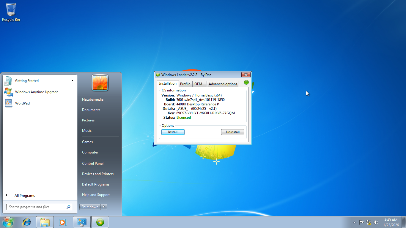 As soon as you’ve logged back in, you can check your activation status by simply running Windows 7 Loader again. If the “Trial” status in the first tab changes to “Licensed”, then it means your Windows 7 has been successfully activated. Alternatively, you can also check the status by opening Windows Explorer, right-clicking Computer, and clicking Properties to view basic information about your computer, which include the operating system’s activation status.