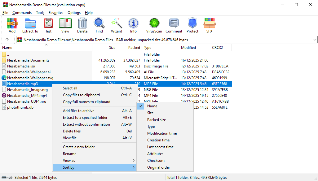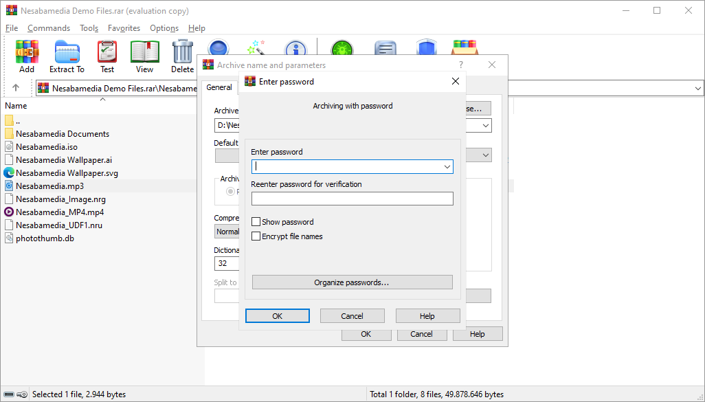 WinRAR can help you protect sensitive files when you are going to send them to a destination over the internet. It is armed with AES 256-bit encryption and authenticated signature technology.