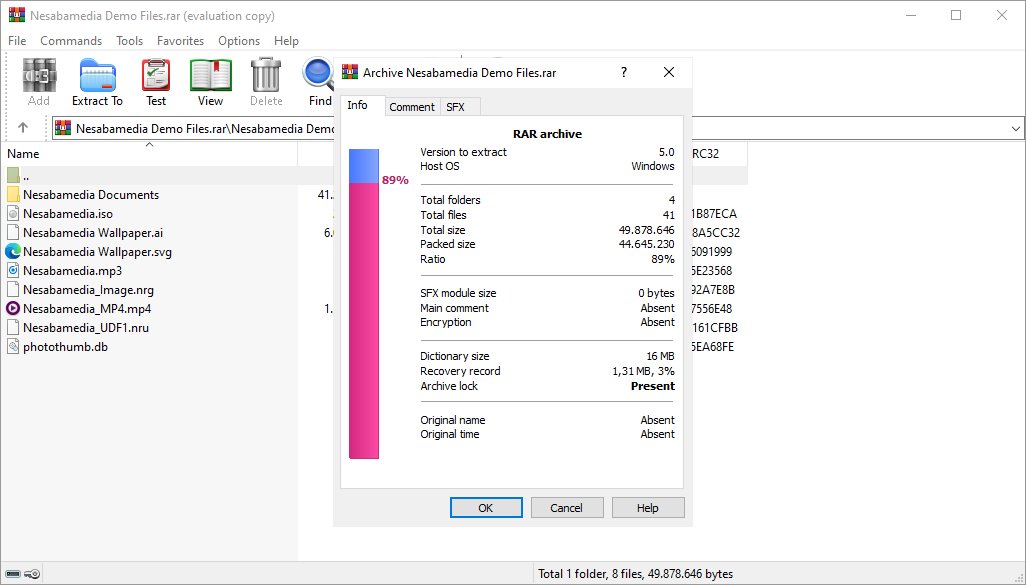 WinRAR can add a recovery record to an archive to increase your chances of recovering corrupted data. The recovery record size is set to 3% by default. The more you increase the record size, the larger the archive size is. The maximum value of recovery record size for RAR format is 10 percent. On the other hand, the recovery record size for RAR 5.0 format can be up to 100%.