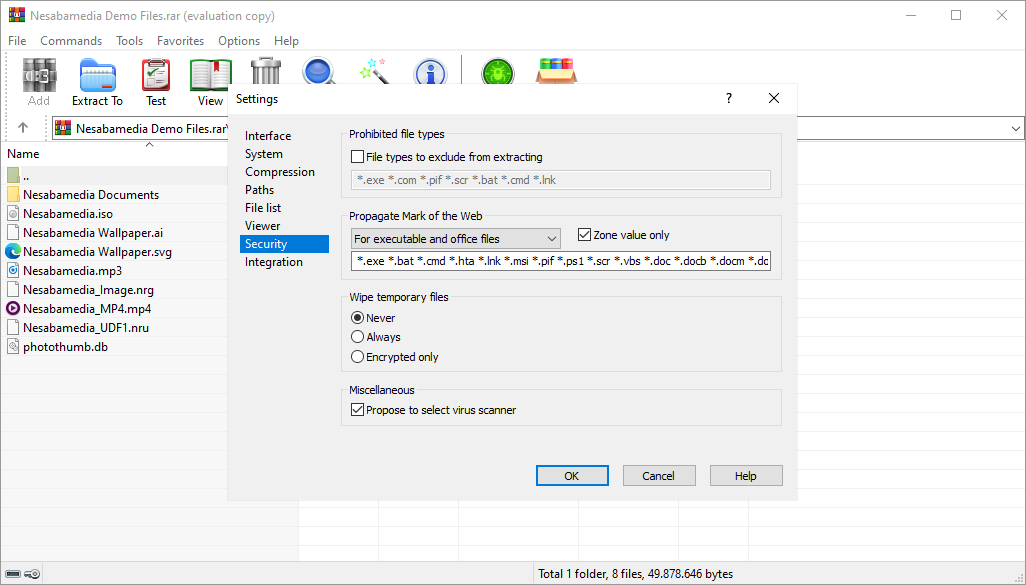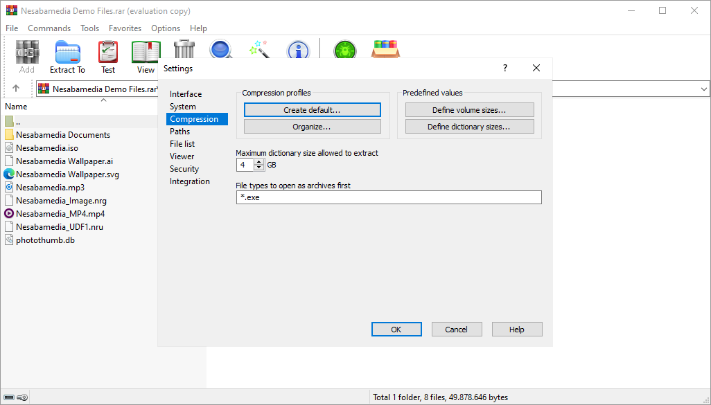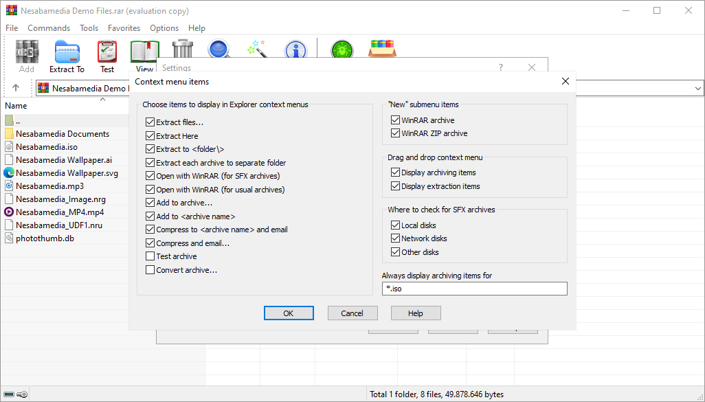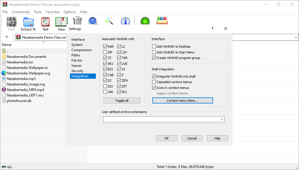 WinRAR offers to integrate itself to the shell so that you can access some of its most used commands without having to open the main interface. A right-click on a folder or file or an archive is all you need to do to execute any of the commands. If you feel that there are too many commands in the context menu, WinRAR lets you reduce the number by removing the ones you rarely use.